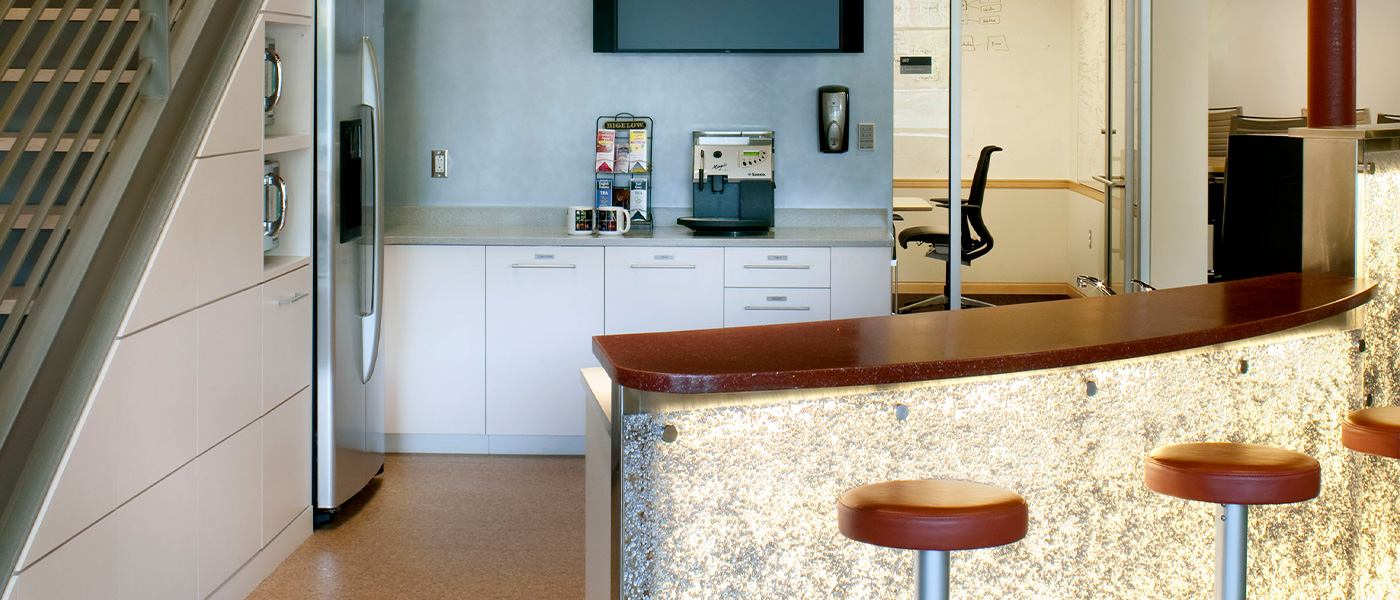 当社の社内職人は、解体、コンクリート、大まかな大工仕事、石材の修復、ドアや金具の取り付けを自ら行いました。 LEED ポイントは、リサイクル、公共交通機関への近さ、低流量設備、FSC 木材と床材から獲得されました。