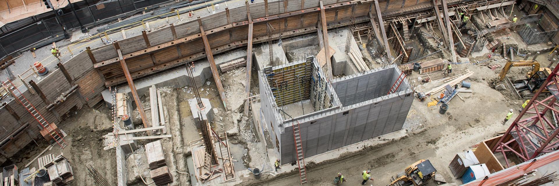 - 建設には隣接する建物と基礎を共有する必要があり、深い杭基礎が必要です