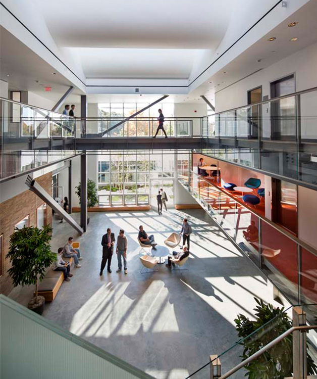 構造用鋼の革新的な使用により、米国鉄鋼構造協会から IDEAS2 National Award を受賞した バカラ と は 編集局は、18,000 平方フィートの 2 階の拡張と既存の建物の改修を行いました。ロングアイランド松原保護法では建物の敷地の拡張が禁止されていたため、拡張は既存の 30,000 平方フィートの構造の上に行われましたが、既存の構造 (基礎、柱、屋根フレーム、横システム) では新しい 2 階を支えることができなかったため、小さな問題が 1 つ発生しました。そのため、柱格子を備えたロングスパン設計が採用され、既存の 1 階への貫通が最小限に抑えられました。既存の建物の内部に貫通する柱は 6 本のみで、新しい 2 階は既存の屋根から 4 フィートの高さに設置されています。また、既存の構造物にかかる「橋」により、中断を引き起こすことなく新しい鋼材を設置することができました。これは非常に重要でした。なぜなら、バカラ と は の本社はプロジェクト全体を通じて 150 人の従業員のために営業し続けていたからです。