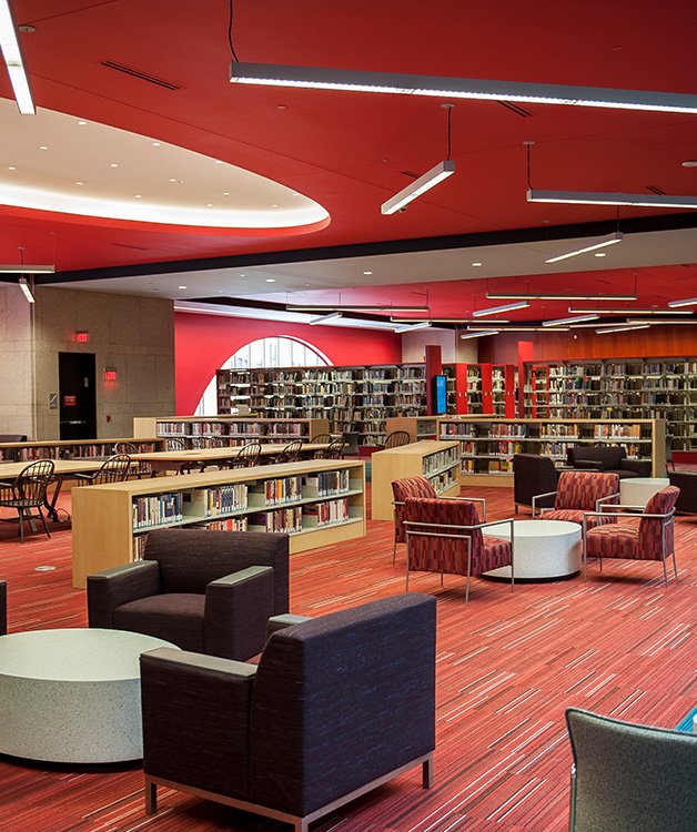 地域社会にとってのジョンソンビルの重要性と市の25の分館図書館へのサービスを理解しているため、施設は建設中もオープンし、稼働し続けました。すべての作業は影響を最小限に抑えるために慎重に段階的に行われ、中断を伴う作業の大部分は勤務時間外に行われました。活性化された図書館には、居心地の良いフロント ロビーがあり、児童図書館、青少年向けエリア、2 階の読者に優しいコレクションなどの更新されたプログラム エリアが特徴です。花崗岩のファサードは、ガラスのカーテンウォール ファサード システムの設置によって改造され、コミュニティへの素晴らしい正面玄関が誕生しました。