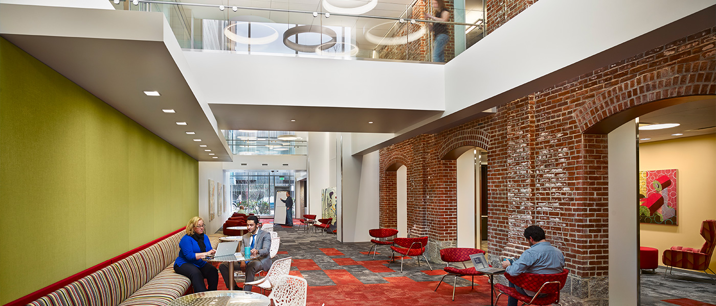 バイオジェンの新しいオンライン バカラには、オープンで非階層的なオフィス スペースと、情報共有とコラボレーションを強化するための「ハドル ルーム」、カンファレンス センター、サテライト カフェ、バイオジェン キャンパス全体にサービスを提供する 225 席の 6,300 平方フィートのカフェテリアとダイニング エリアが含まれています。