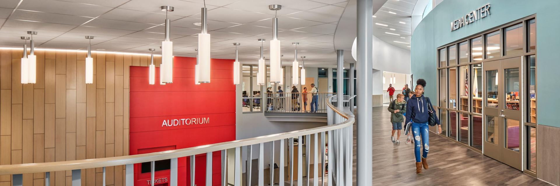 このプロジェクトは、既存の中学校・高等学校への混乱をなくすために 2 段階で完了しています。プロジェクトの第 1 段階には、6-12 翼と Pre K-5 翼の両方の建設が含まれていました。第 2 段階には、既存の学校の取り壊し、造園と線路の設置、新しい野球場と運動場の用地開発が含まれます。