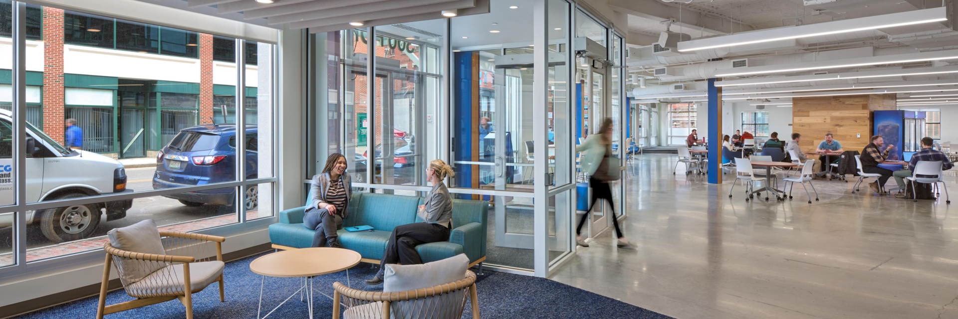 空調設備、電気設備、防火設備の調整により、新しいスペースの全面改修が行われました。この建物の最新の技術機能により、学生は地元および州全体のコミュニティへのアクセスが向上し、アクセシビリティが向上します。