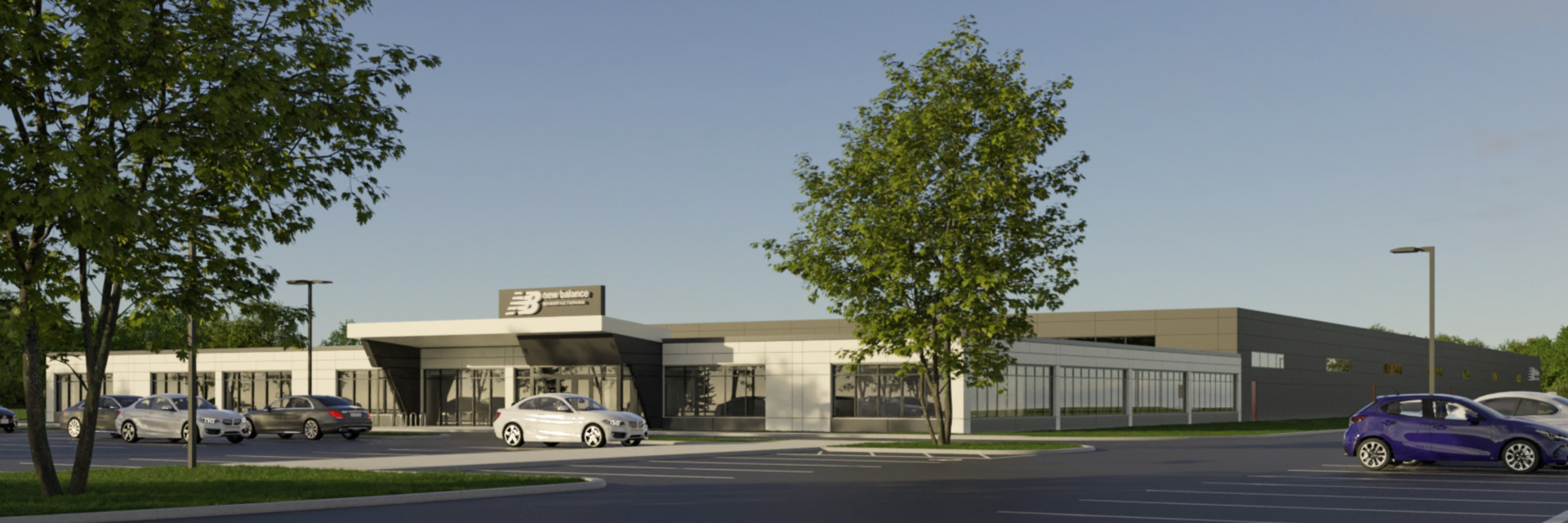 このプロジェクトは、全 LED 照明などの機能を通じて、ニューバランスの長期的な強化された持続可能性目標を反映しています。迅速なスケジュールをサポートするために、スケジュール遅延のリスクを軽減するために、リードが長い機器 (屋上ユニット、開閉装置、発電機など) が事前に購入されています。完成した施設は、将来の拡張の可能性に備えて準備および建設されます。