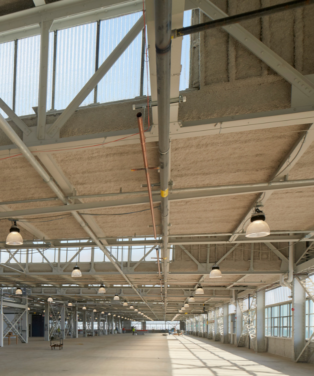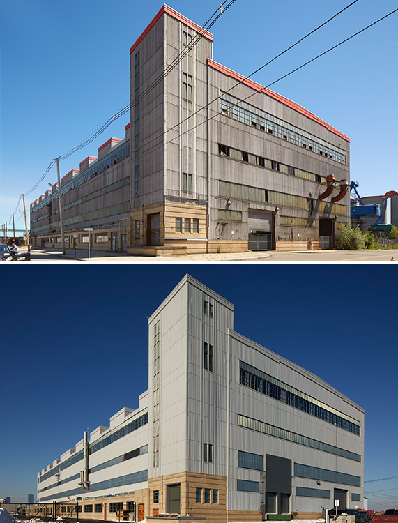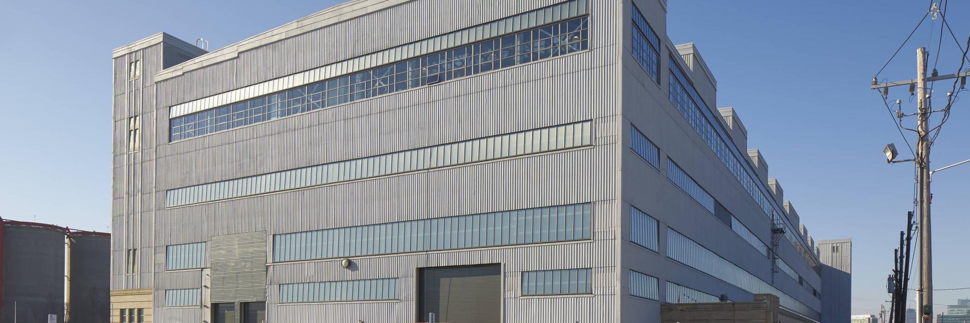 建物の改修により、建物の鉄骨構造と工業的な雰囲気は保たれましたが、既存の構造物に含まれるアスベストサイディングやその他のアスベスト含有材料を軽減するために多大な努力が払われました。大規模な再利用の取り組みにより、建物は現代の製造基準に達し、窓が交換され、新しい効率的な M/E/P システムと床材が導入されました。製造設備と原材料を管理するために、2 台のエレベーターが拡張され、コードが適用されました。