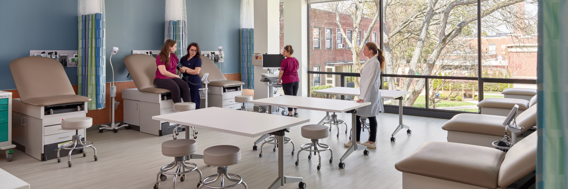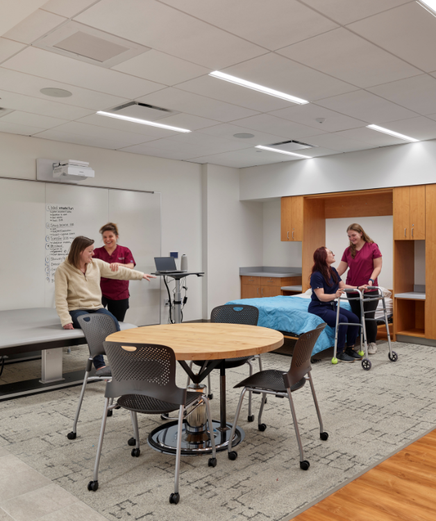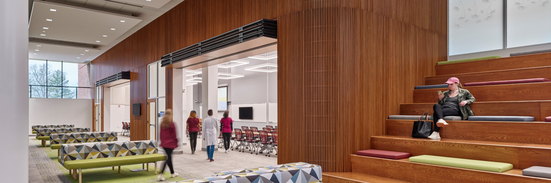 既存の 35,000 平方フィートのシェーレ図書館ビルは、次世代の世界クラスの医療専門家のための学習スペースを開発するために完全に改装されました。この施設は、評価ラボやベッドサイドスキルラボを含む新しいシミュレーションおよび健康科学ラボ、教室、スタディキャレル、教員コラボレーションスペース、ブレイクアウトシート、グループ学習室、ラウンジ、サポート施設とシステムの構築を提供します。さらに、この建物には、複数の学生ラウンジエリアを備えたアメニティスペース、カスタムキャビネットと木製の壁仕上げが特徴のカフェ/自動販売エリア、浮き天井、小さなセミナースペースに変換できる崩壊壁のある大きな会議スペースがあります。この学校は、共同医療教育、現代的な労働力開発、地域ケアに重点を置いています。