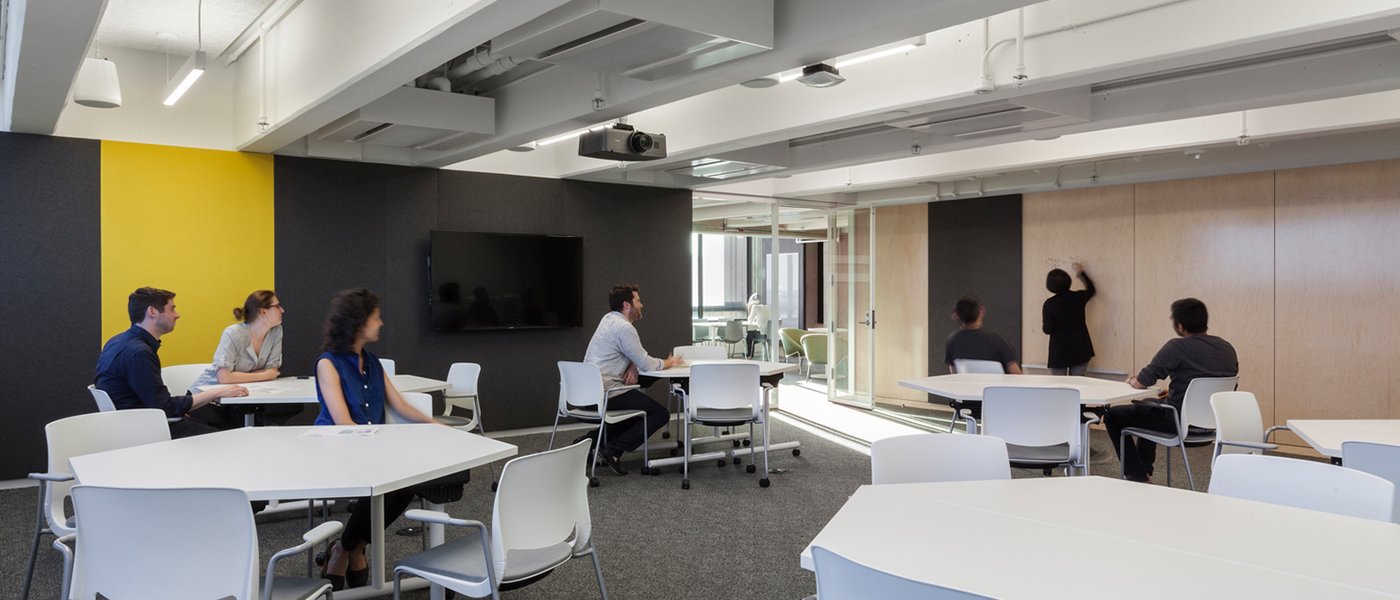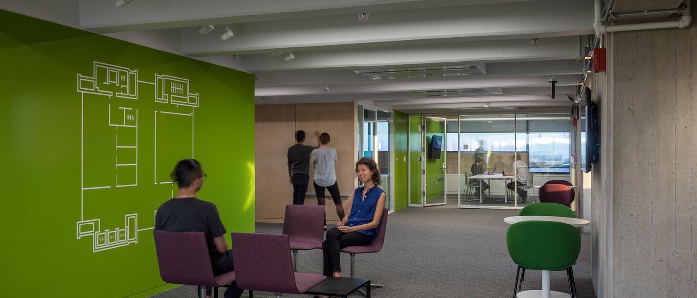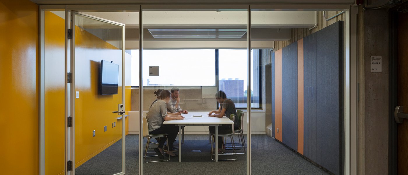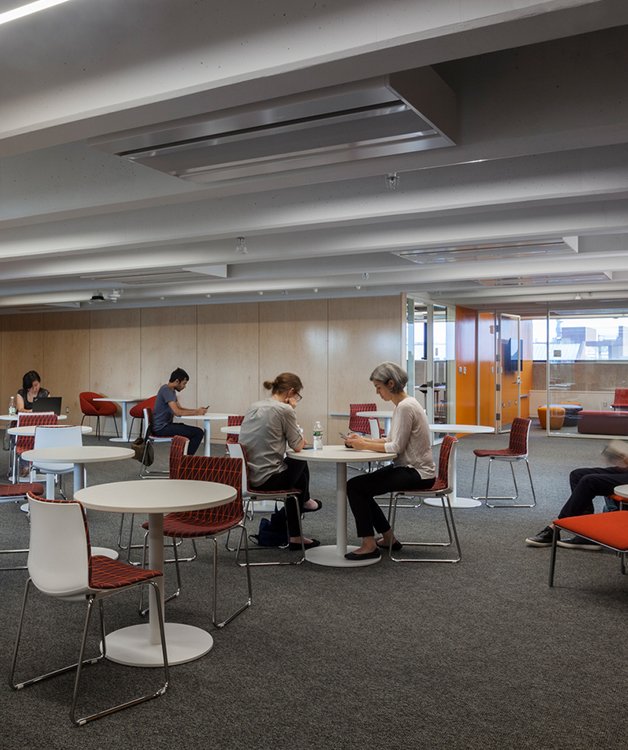 図書館の再利用には、取り壊しと削減、内装の調整、スワイプカードアクセスドア、新しいバスルーム、5階から9階の機械配置の更新が含まれていました。さらに、オーディオ ブースとビデオ スタジオでは、建物内での音の反射を最小限に抑えるために特別な音響処理が必要でした。占有された図書館への混乱を制限するために、プロジェクトのスケジュールが段階的に変更されました。