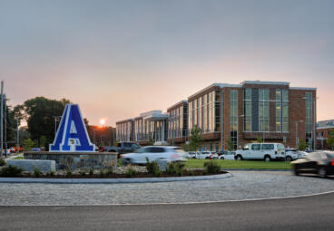 • 交通量の多い都市部の交差点にある占有キャンパスに建設された
