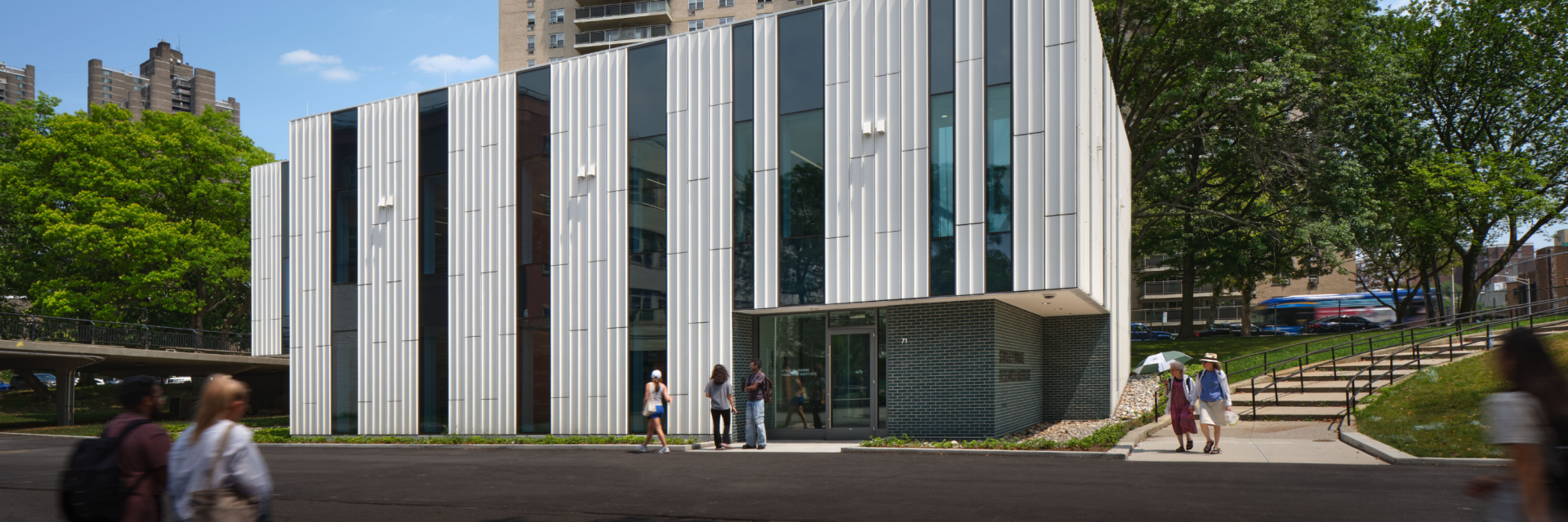 • この施設は、ニューヨーク市初の完全電化実験棟の 1 つとして建っており、高等学校の校舎の新たな基準を打ち立てています