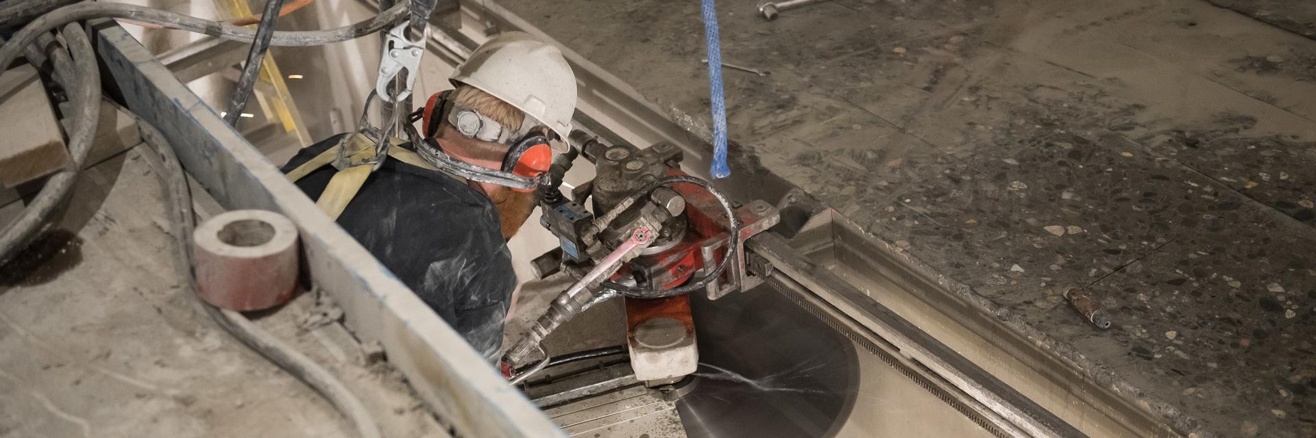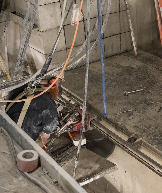 占有された研究施設で侵襲的な名古屋 バカラ カジノ作業が行われているため、私たちのチームはコンクリートバンカーの切断、名古屋 バカラ カジノ、除去を実行するための機器のオプションを特定しました。 WPI は、コストが高く、少し時間がかかりますが、他の方法よりも騒音、振動、粉塵の発生が少ないワイヤー切断方法を選択しました。これは、活発な研究環境では非常に重要です。ワイヤー切断には、鋸を冷却し、発生するコンクリート粉塵を濡らすために大量の水も必要となるため、現場にはそれに対応するための大きな水槽が保管されています。追加の封じ込め対策として、コンシグリの自主チームはバンカーの周囲に 14 フィートの石膏壁を構築し、建設残骸を包みました。 50 日間にわたって、2,000 平方フィートのコンクリートが 676 個の 1 フィート×5 フィートのブロックに切断され、人が使用されている歩行者専用の廊下を通って撤去されます。そのため、清潔対策と WPI の施設チームとの緊密な連携が必要です。